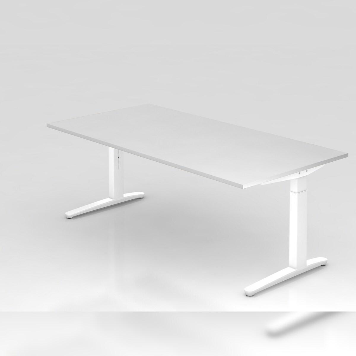 PROREGAL Schreibtisch Mika | Weiß | Weißes Gestell | BxT 200x100cm | Arbeitshöhe 65-85cm | höhenjustierbar, 1cm Raster | C-Fuß-Gestell | Bürotisch