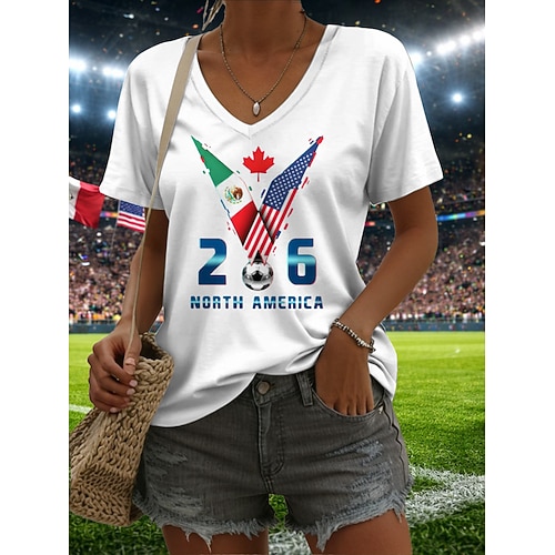 Per donna Maglietta Stampato Grafico Squadra di calcio Elegante Classico Casual Manica Corta Scollo a V Top Regolari Quotidiano Blu Nero Bianco Verde Estate Primavera