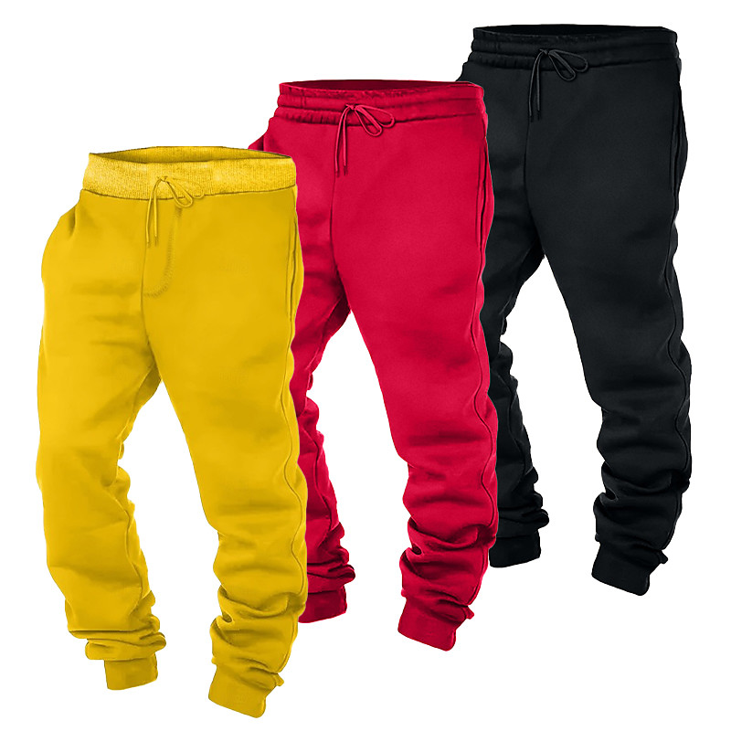 Multi Packs 3pcs Men's RedPurpleYellow Sweatpants Joggers Fleece Pants Drawstring Elastic Waist Plain Vacation Daily Wear Polyester Fall