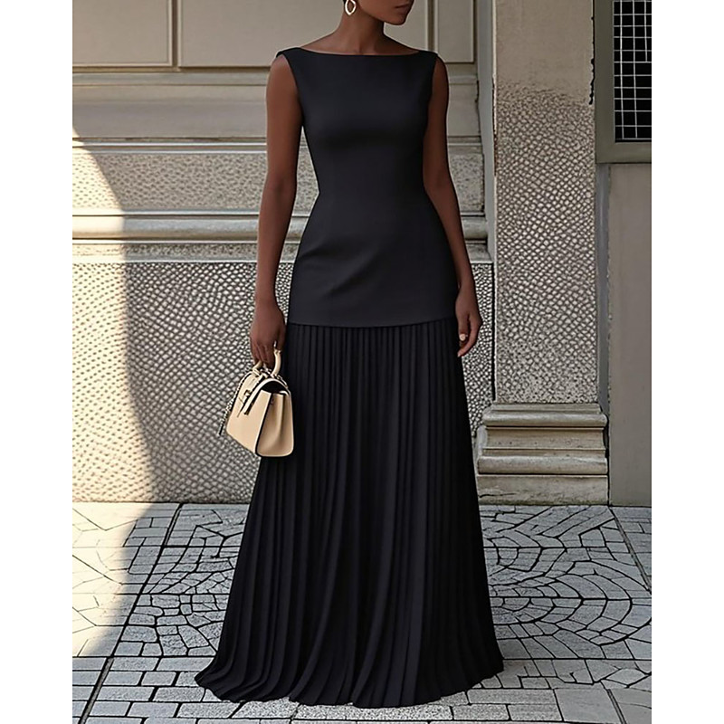 Women's Elegant Active Streetwear Skirt Sets Bolero Top Sleeveless Crew Neck Plain Pleated Formal Outdoor Vacation Blue Black White Spring Regular Fit