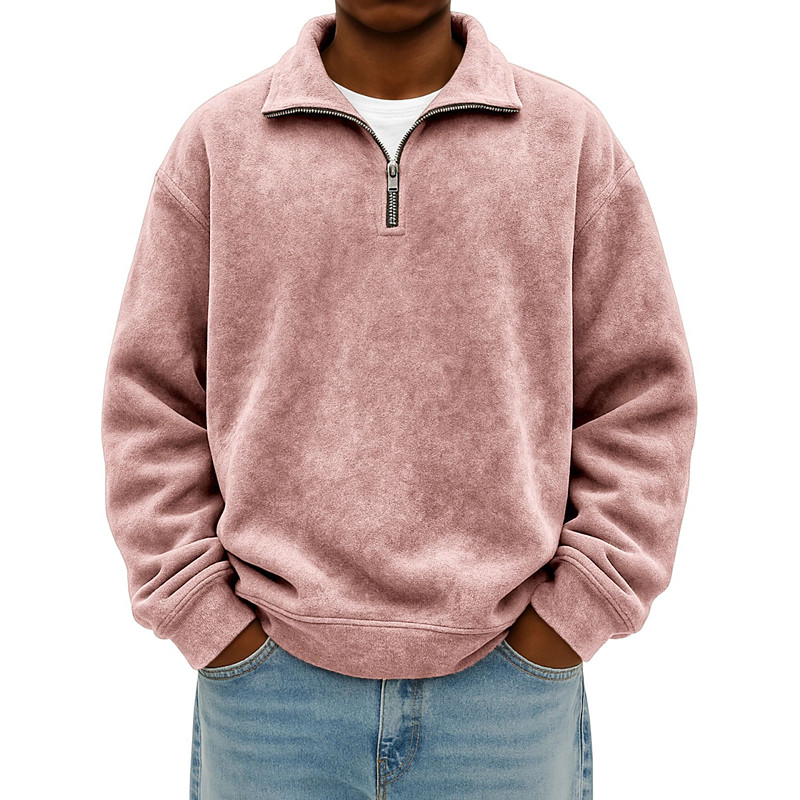 Men's Faux Suede Zip Polo Pullover Sweatshirt Vacation Street Zip Up Long Sleeve Fashion Basic Solid Color Plain Fashion Fall Spring Fall All Seasons Relaxed Fit Black Pink Army Green Navy Blue Blue