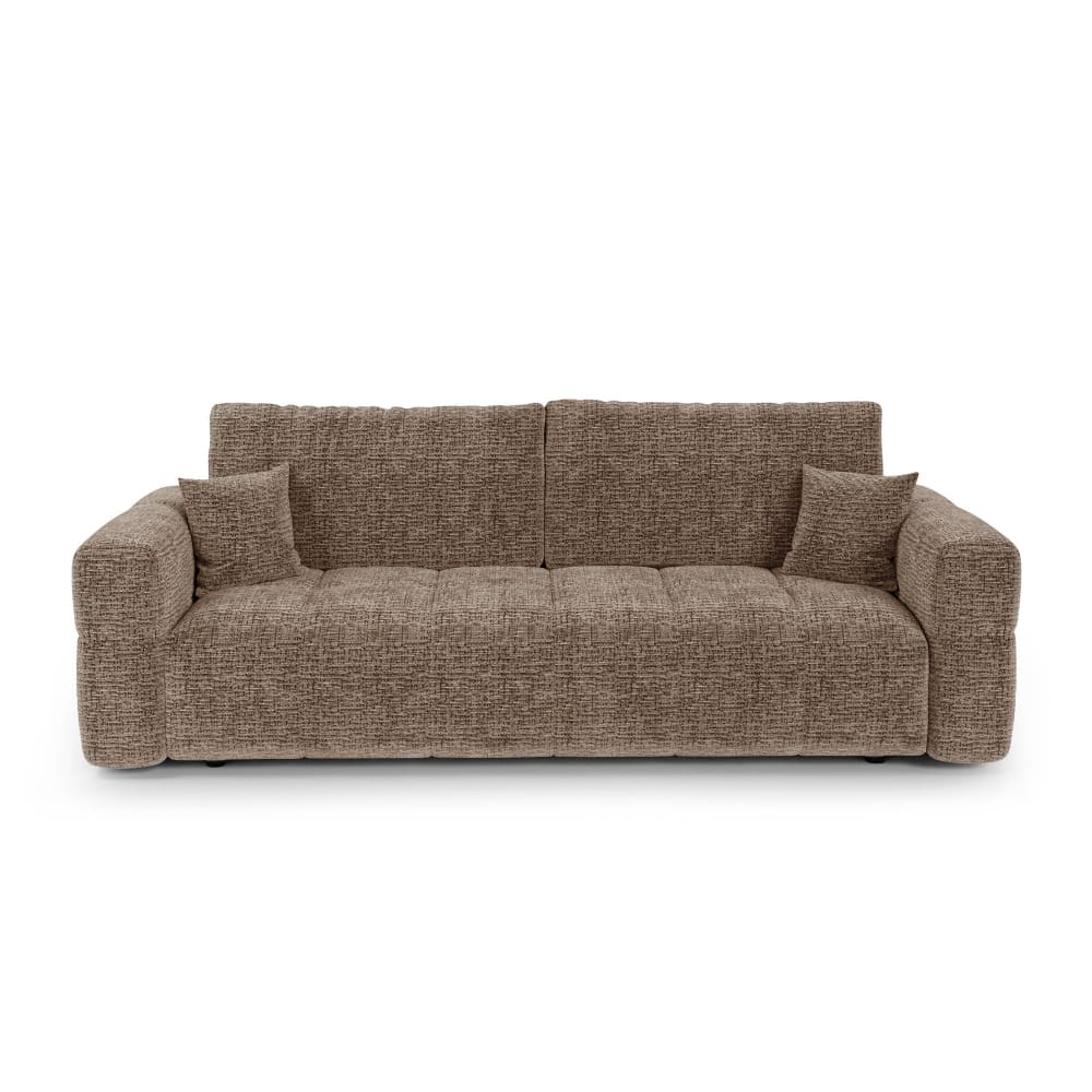 Divano letto cassettone 4 posti tessuto morbido al tatto marrone