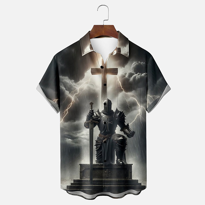 Men's Knights Templar Shirt Button Up Shirt Short Sleeve Vintage Retro Summer Spring Turndown 3D Print Collared Shirts Front One Pocket Black