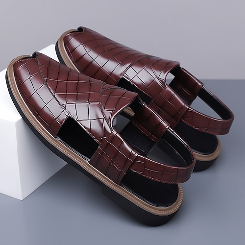 Sandali da uomo in similpelle marrone con cinturino regolabile, suola ammortizzata e design traforato, comodi per passeggiate all'aperto, abbigliamento casual estivo