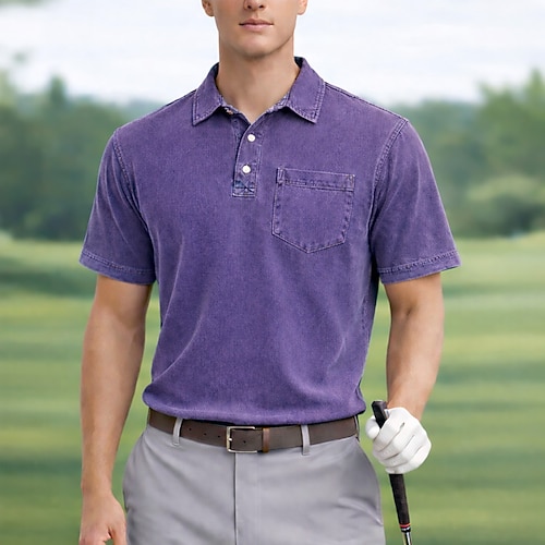 Per uomo Polo Camicia lavata con acido Casuale Sportivo Collo ripiegato Manica Corta Sport Moderno Semplice Tasca Traspirante Primavera Estate Blu Nero Rosa Blu marino Viola Verde Polo