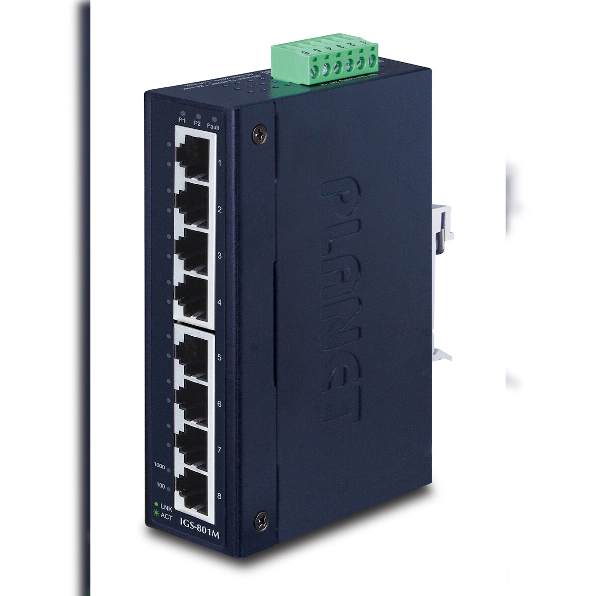 PLANET Managed Industrial Gigabit Switch 8-Port 10/100/1000 Mbps IP30 Slim Type