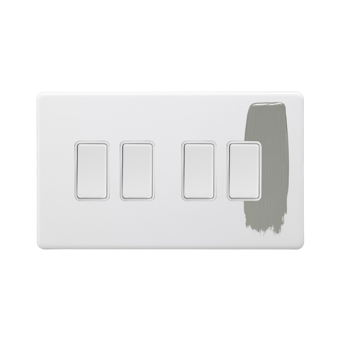 Soho Lighting Primed Paintable 4 Gang Intermediate switch with White Switch - Size: H 86mm X W 146mm X D 4.5mm