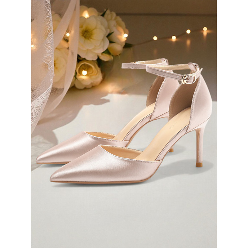 White Satin Closed-Toe Wedding Shoes with Rhinestone Ankle Strap - Bridal for Special Occasions