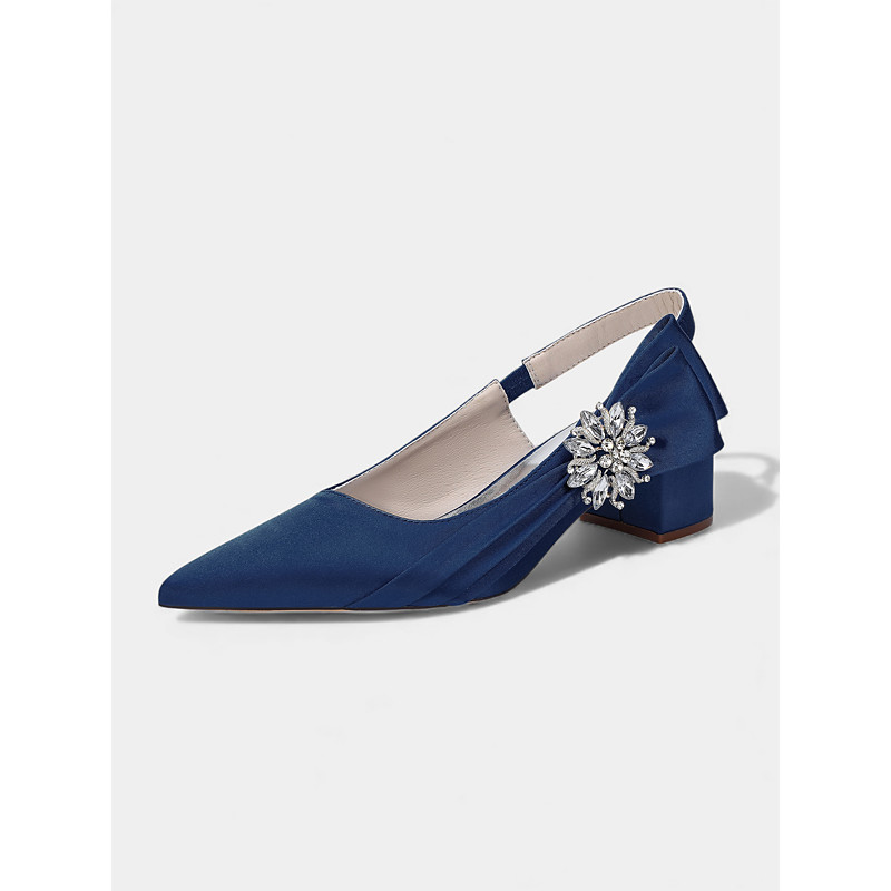 Women's Blush Satin Pointed Toe Block Heel Pumps - Elegant Floral Crystal Accent Dress Shoes for Mother of the Bride, City Chic Wedding Formal Reception