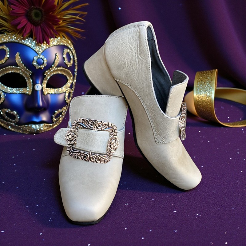 Men's Square Toe Shoes with Decorative Antique Buckle, Retro Style, Block Heel, Comfortable Fit for Carnival and Festive Events