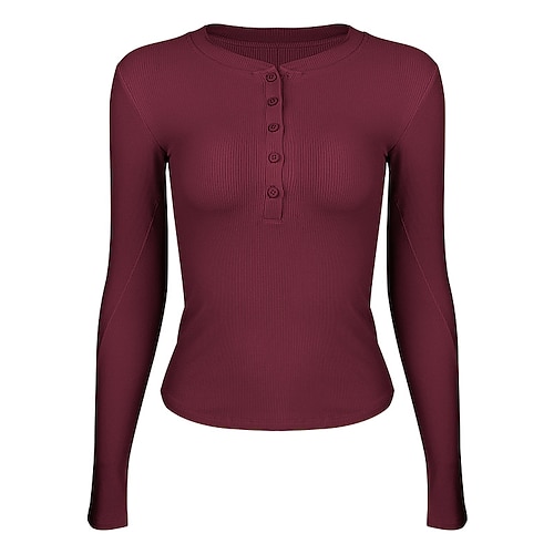 Per donna Camicia da allenamento Top casual Girocollo Morbido Manica Lunga Gli sport Tinta unica Top Per Palestra Corsa Fitness Abbigliamento sportivo