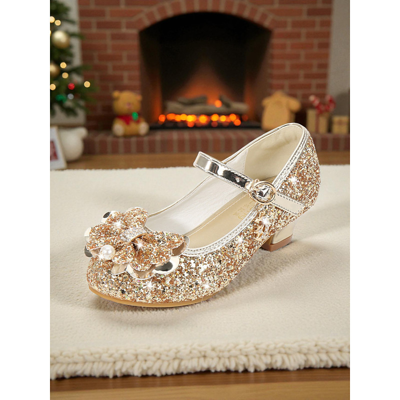 Kid's Pink Glitter Mary Jane Shoes with Bow - Perfect for Christmas Party Outfits and Holiday Celebrations