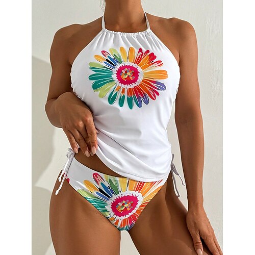 Per donna Costumi da bagno Tankini Due pezzi Birichino Costume da bagno Senza schiena Vacanza Abbigliamento da Spiaggia Floreale Grafico All'americana Senza Maniche Costumi da bagno