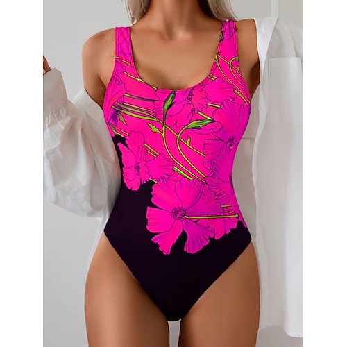 Costume da bagno intero da donna color block monokini schiena scoperta controllo della pancia vita alta slim abbigliamento da spiaggia per le vacanze floreale a righe collo alla halter costumi da