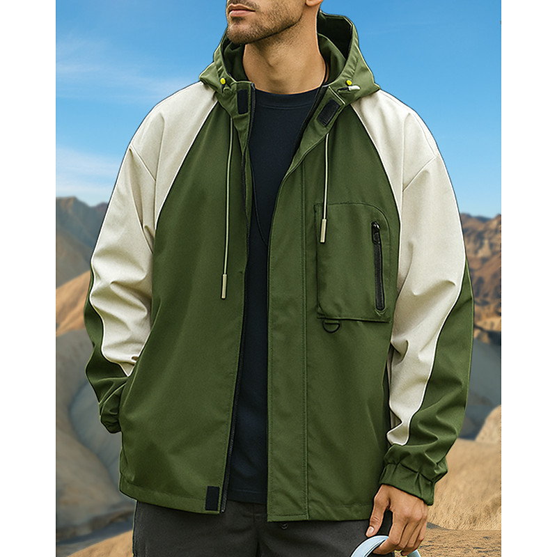 Men's Windbreaker Softshell Jacket Hardshell Jacket Outdoor Waterproof Windproof Hiking Outfits Hiking Clothes Spring Autumn / Fall Top Camping / Hiking / Caving Running Solid Color Black Green Khaki
