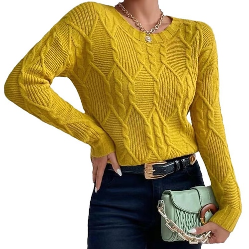 Per donna Felpa Maglione Elegante Moda Carino Tinta unica Geometrico Girocollo Lavorato a maglia Manica Lunga Top Regolari Maglia All'aperto Casa Quotidiano Giallo Autunno Inverno