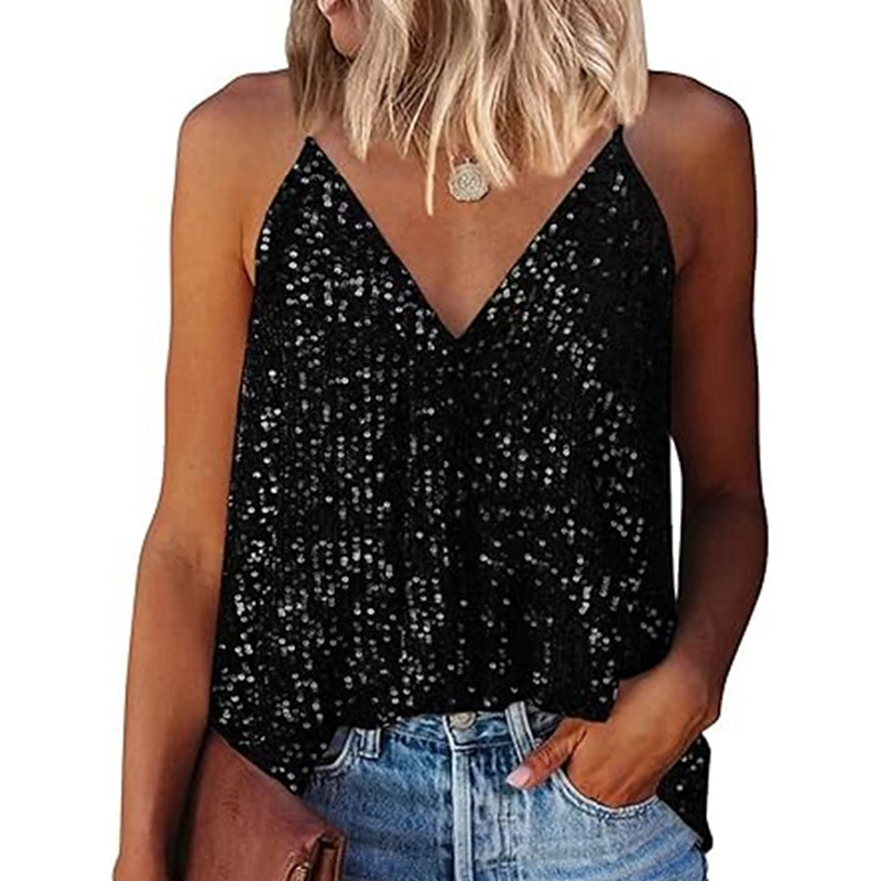 Women's Camisole Tank Top Solid Color Stylish Casual Sleeveless Strap Regular Tops Daily Sequins Silver Black Champagne Yellow Pink Summer Spring