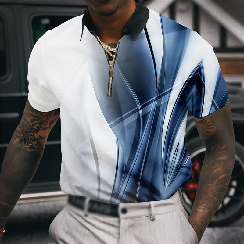Men's Polo Shirts Big and Tall Gradient Turndown Zipper Short Sleeves Summer Spring Fashion Designer Casual Breathable Outdoor Street Tops
