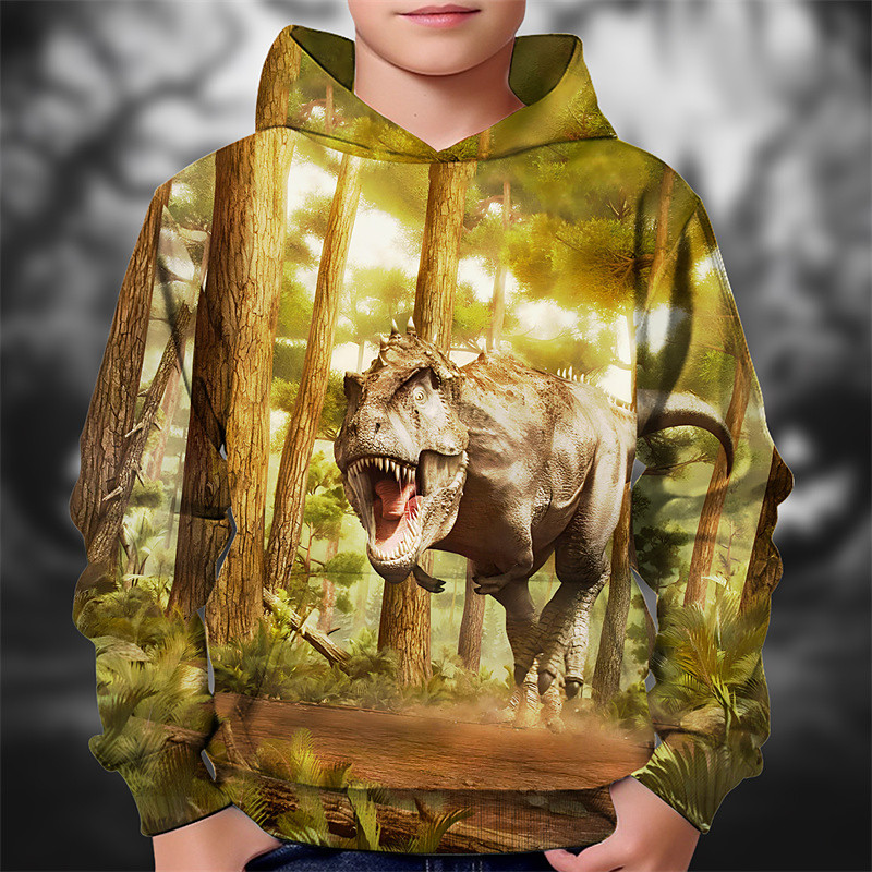 Halloween Boys' 3D Dinosaur Hoodie Long Sleeve Spring Fall Fashion Streetwear Kids 4-12 Years Hooded Outdoor Casual Daily Regular Fit