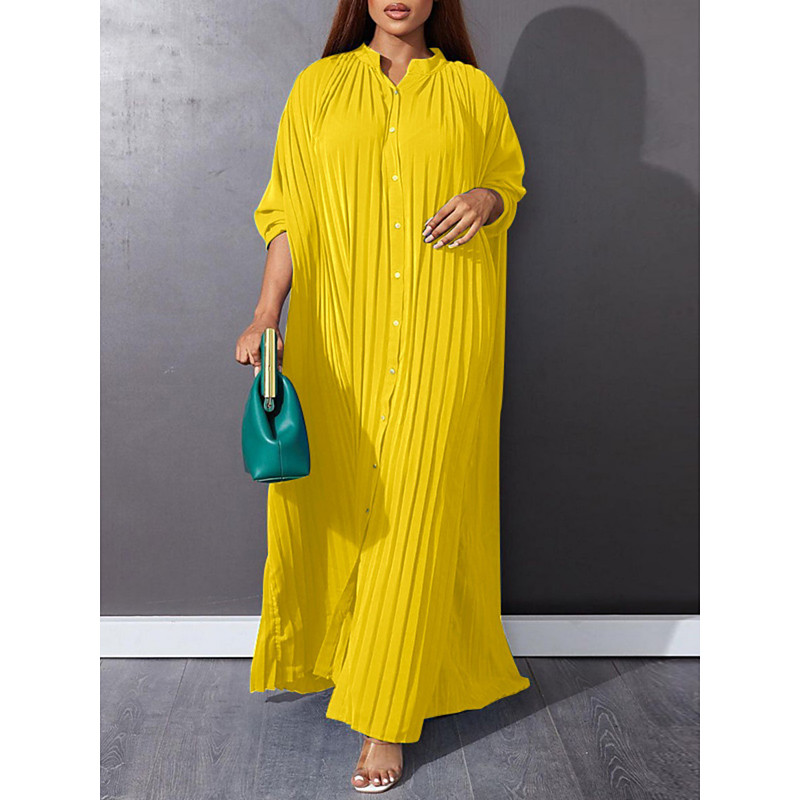 Women's Maxi Dress Shift Dress Pleated Dress Casual Daily Loose Fit Plain Long Sleeve Lapel Blue Yellow Fuchsia Summer Spring Fall