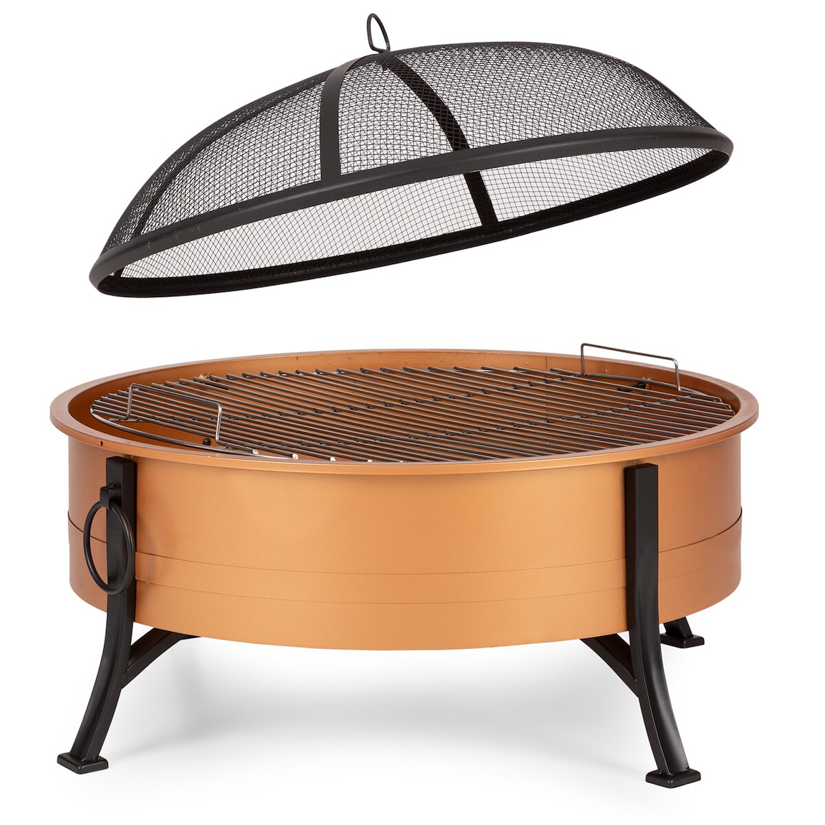 Blumfeldt Catania 2-in-1-Feuerschale Ø80cm Funkenschutz Ø70cm Grill Stahl Kupfer Kupfer-Metallic