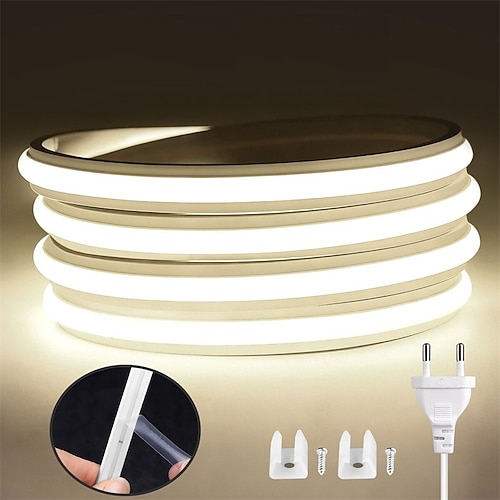 Striscia LED COB AC 220V, impermeabile, IP65, super luminosa, bianca, 10 W/m, CRI 80, con interruttore e spina.