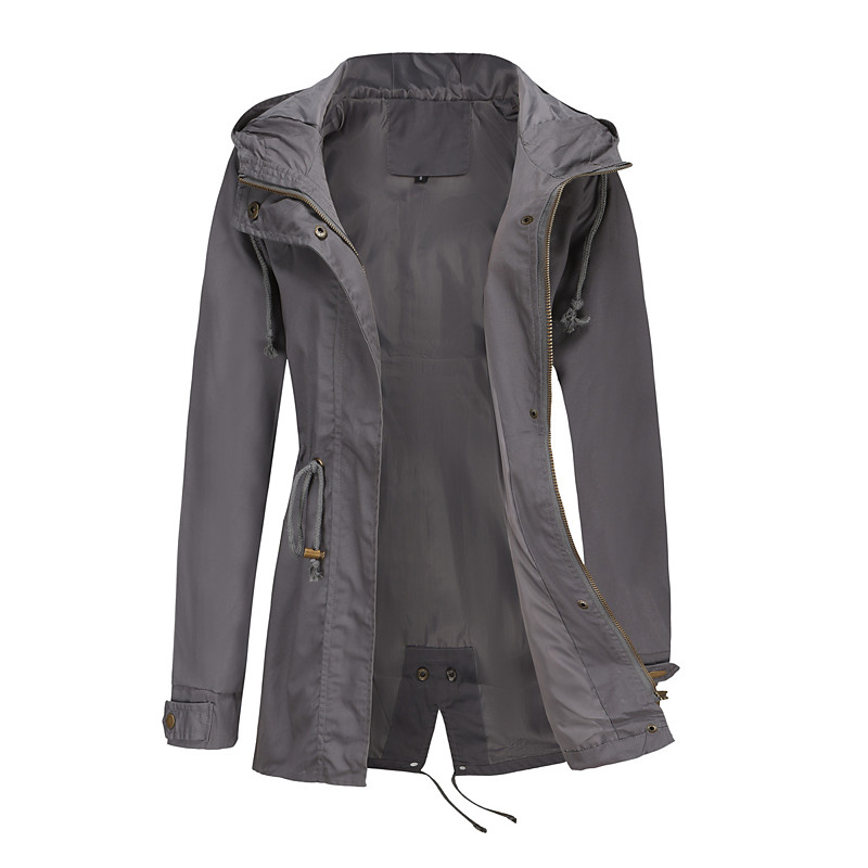Women's Coat Waterproof Comfortable Full Zip Drawstring Fashion Street Style Plain Outdoor Casual Daily Long Hooded Regular Fit Long Sleeve Outerwear Black White Burgundy Spring Fall