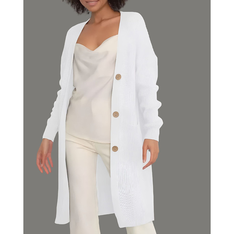 Women's Cardigan Casual Solid Color Ribbed V Neck Buttons Knitted Long Sleeve Long Tops Knit Daily Holiday Going out Black White Fall