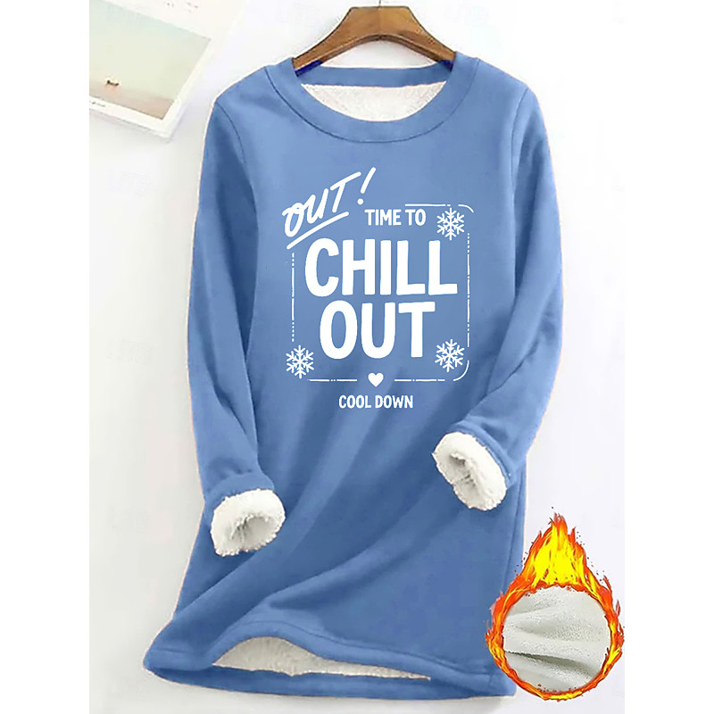Women's Fleece Lined Pullover Sweatshirt Pajamas Pullover Sweatshirt Pullover Sweatshirts Letter Warm Streetwear Casual Long Sleeve Crew Neck Long Tops Home Dailywear Casual Print Black Pink Dark