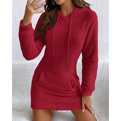 Per donna Mini Abito Abito nero Abito con Cappuccio Abito Invernale Elegante Moda Moderno Quotidiano All'aperto Uscire Vestibilità regolare Semplice Manica Lunga Con Cappuccio Nero Bianco Rosa Verde