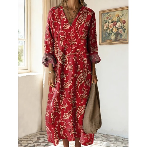 Per donna Abito Midi Abito a Tubino Vacanza Casual Uscire Vestibilità regolare Grafico Paisley Manica Lunga Scollo a V Nero Rosso Marrone chiaro Verde Autunno Inverno