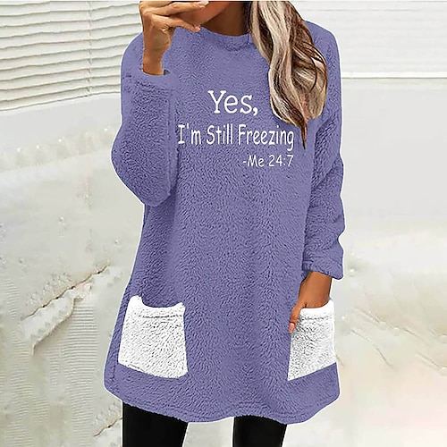 Per donna Felpa Pullover Lettera Caldo Moda Casual Manica Lunga Girocollo Top lunghi Streetwear Abbigliamento Quotidiano Casuale Patchwork Tasca Stampato Rosa Blu Viola Arancione Verde Autunno Inverno