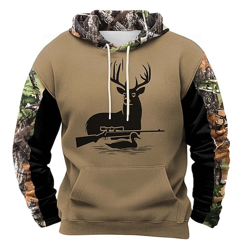 Herren Hirsch Kapuzensweatshirt Pullover Mode Klassisch Rundhalsausschnitt Outdoor Jagd Schwarz Braun Khaki Braun 2 Kordelzug Herbst Winter Designer S M L XL XXL XXXL