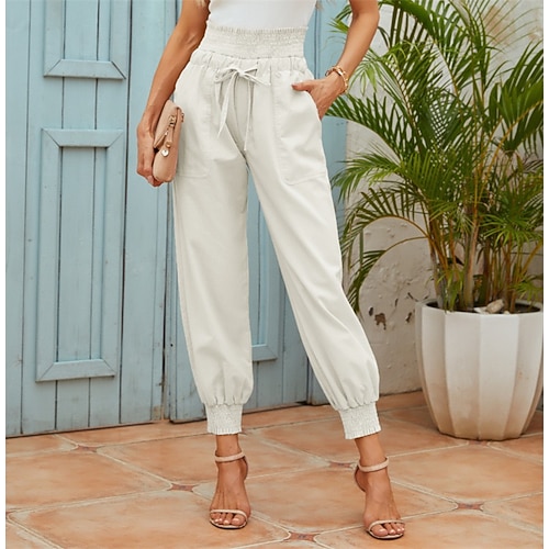 Per donna Pantaloni in cotone e lino Pantaloni Casual Quotidiano Lunghezza alla caviglia Semplice Coulisse Tasche Laterali Traspirabilità Confortevole Inelastico Abbigliamento quotidiano Nero Bianco
