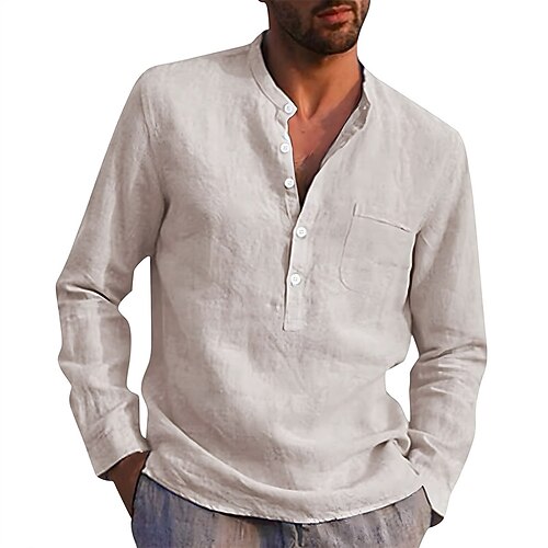 Per uomo Camicia camicia di lino Camicia con colletto a fascia Camicia estiva Abbigliamento mare Tinta unica Strada Hawaiano Blu chiaro Rosso bordeaux Nero Bianco Manica lunga Colletto Estate