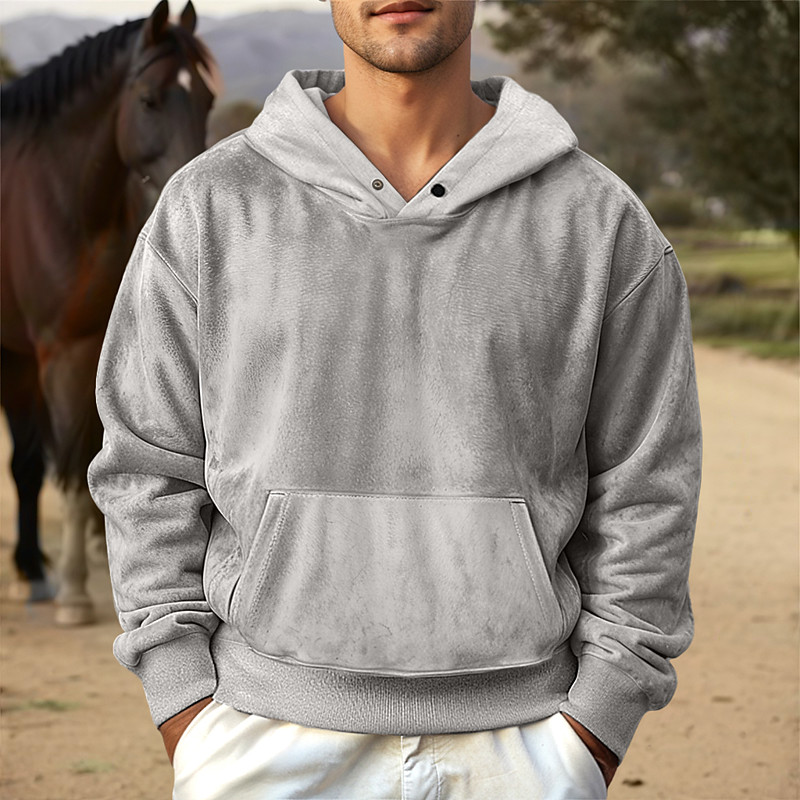 Men's Faux Suede Pullover Hoodie Sweatshirt Plain Work Sports Outdoor Casual Streetwear Basic Casual Spring Fall Cross-Seasons Clothing Apparel Hoodie