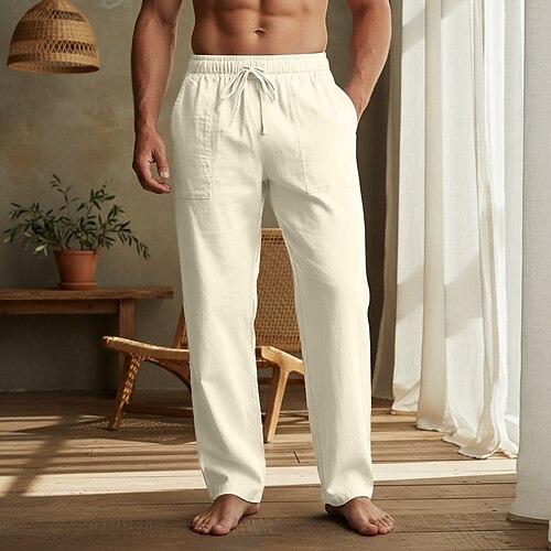 Per uomo Pantaloni di Lino Pantaloni Pantaloni Estivi Coulisse Elastico in vita Gamba Dritta Semplice Comodità Traspirante Lunghezza intera Casuale Quotidiano Ferie Vacanza Moda Nero Bianco