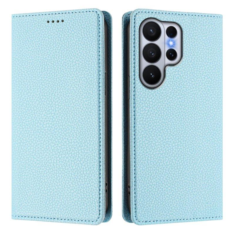 Litchi Samsung Galaxy S26 Ultra Plånboksfodral Konstläder RFID Skydd - Blå
