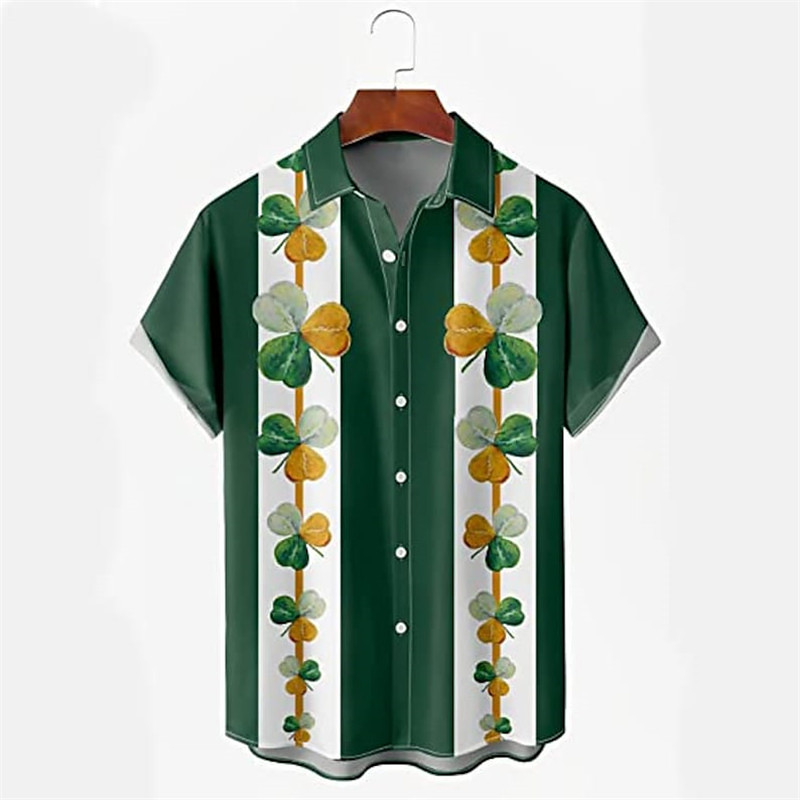 St.Patrick's Day Four Leaf Clover Casual Men's Shirt Daily Wear Going out Weekend Autumn / Fall Turndown Short Sleeves Dark Green, Green S, M, L 4-Way Stretch Fabric Shirt St.