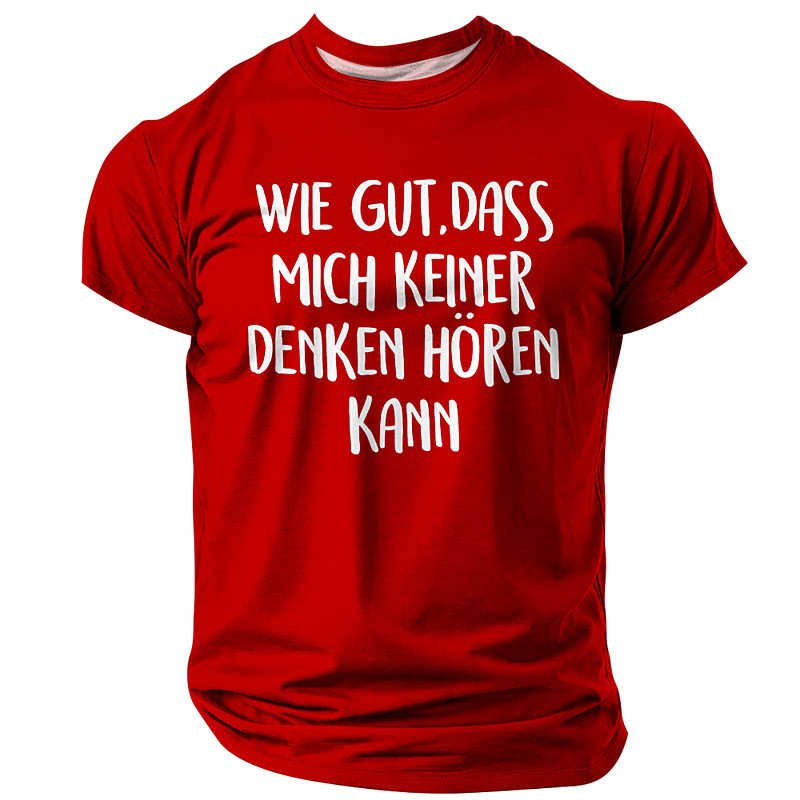 Men's Funny German Quote Graphic T-Shirt: 'Wie gut, dass mich keiner denken hören kann' (Good thing no one can hear what I'm thinking) Lifestyle Tee