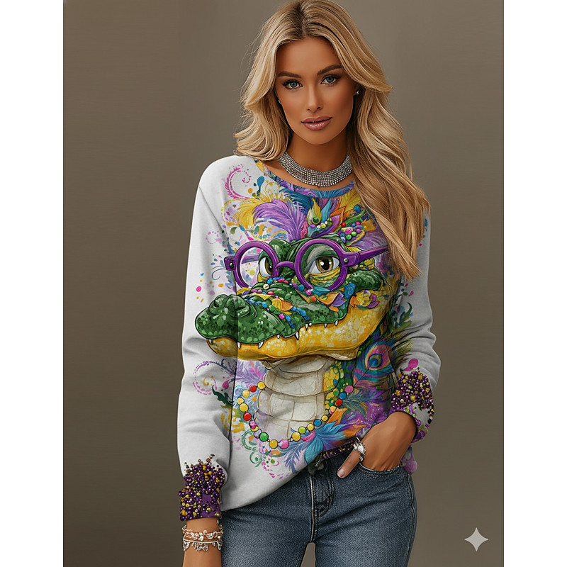Carnival Women's T Shirt Graphic Vintage Fashion Stylish Long Sleeve Crew Neck Round Neck Regular Tops Daily Party Evening Wear Weekend Print Rainbow Spring Fall Winter