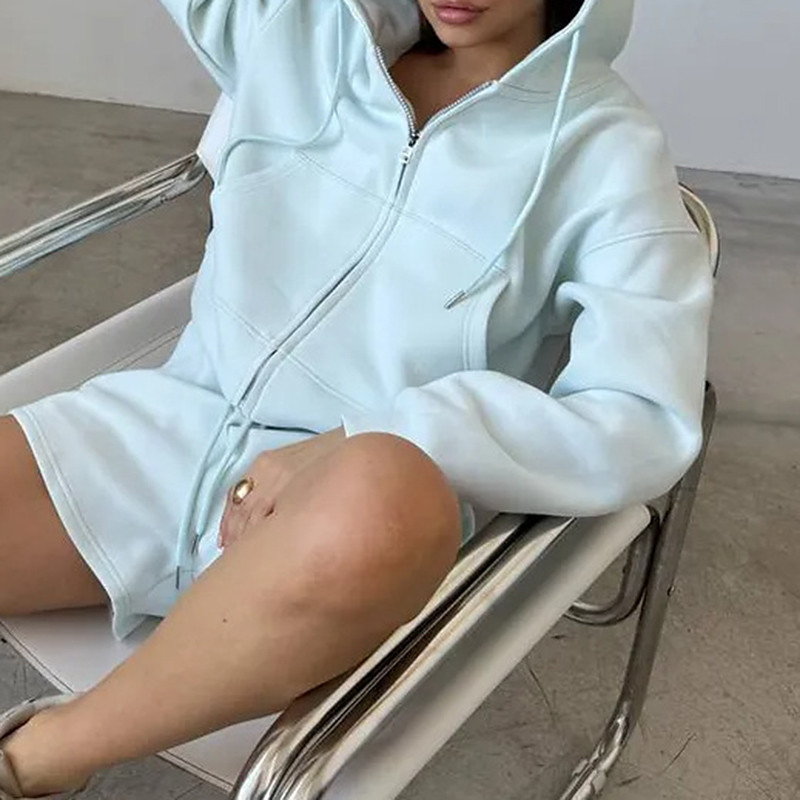 Women's Tracksuit Zip Up Hoodie Track Shorts Drawstring Pocket Solid Colored Clothing Suit Spring Black White Gym Training Running High Waist Windproof Lightweight Moisture Wicking Long Sleeve Sport