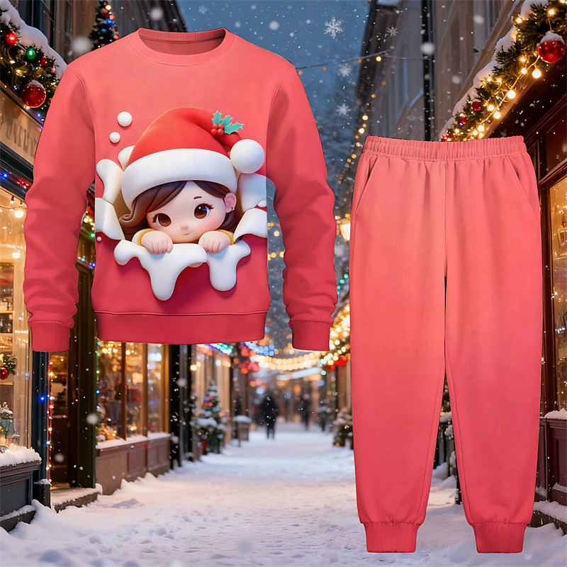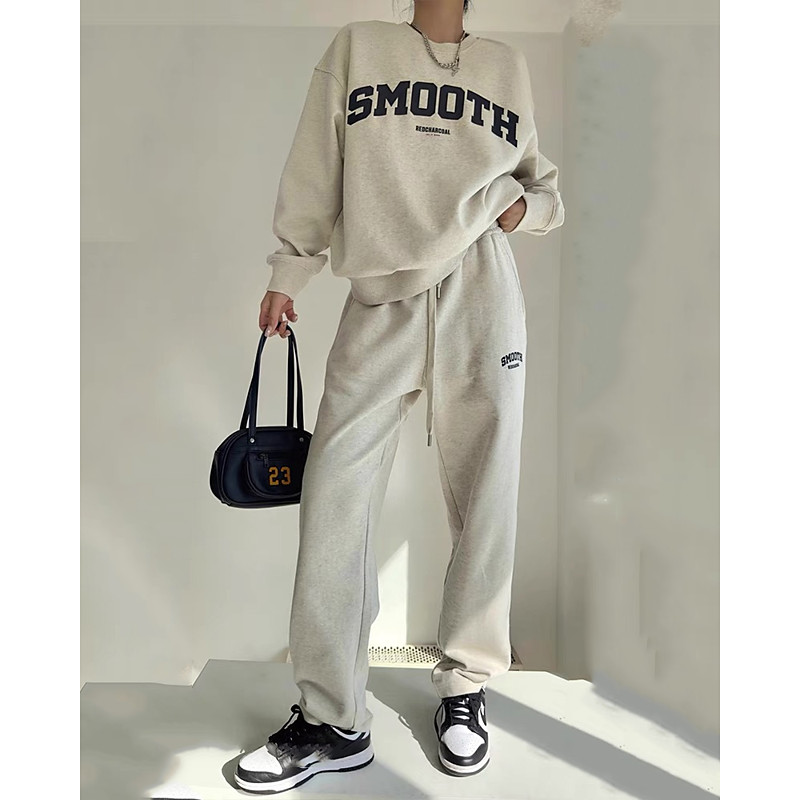 Women's Elegant Warm Fashion Two Piece Sets Tracksuit Pants Sets Long Sleeve Bishop Sleeve Crew Neck Round Neck Graphic Letter Print Outdoor Vacation Daily Black Pink Dark Pink Spring Regular Fit