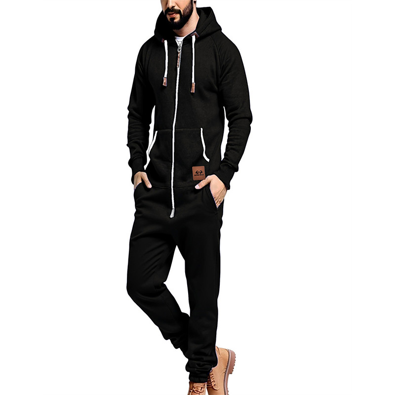 Men's Hoodie Tracksuit Jumpsuit Hoodie Outdoor Vacation Casual Daily Drawstring Zip Up Plain Wine Red Black Royal Blue Activewear Sports Fashion Fall