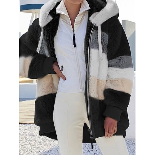Per donna Giacca in Pile Cappotto Teddy Giacca con Cappuccio Caldo Traspirante Cerniera Tasca Foderato in pile Casual A righe Vacanza Streetwear Abbigliamento quotidiano Uscire Cerniera Regolare