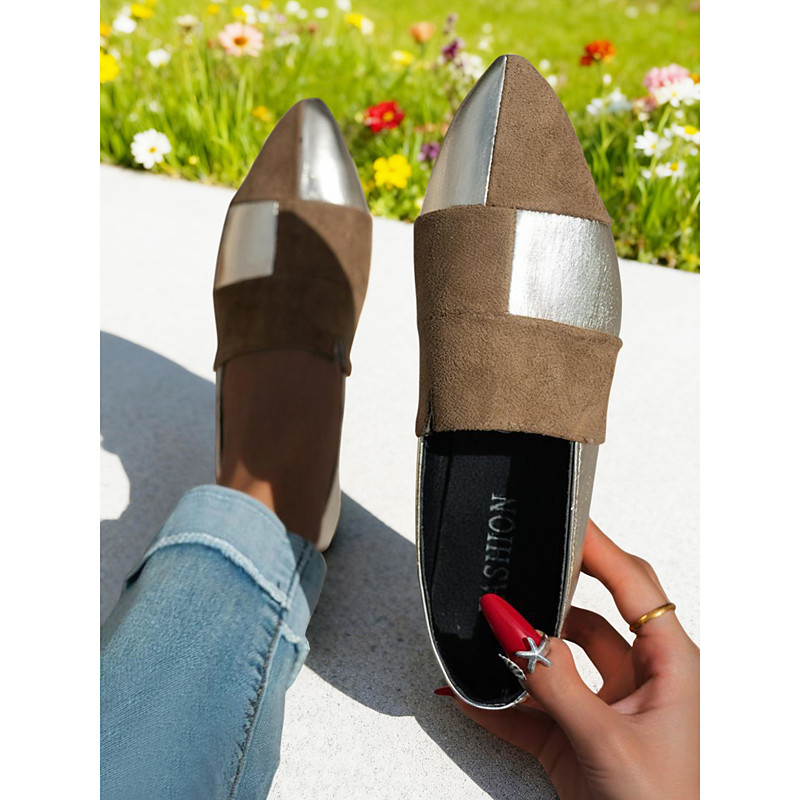 Women's Vintage Mid Heel Loafers – Brown Pointed Toe Slip-On Pumps with Contrast Strap – Elegant Office Casual Dress Shoes