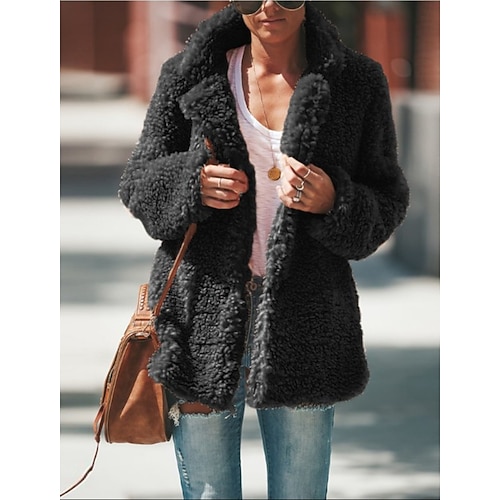 Per donna Cappotto Invernale Giacca Invernale Caldo Leggero Aperturaanteriore Elegante Carino Quotidiano Pelliccia Tinta unica Casa Capodanno Streetwear Casuale Regolare Bavero classico Vestibilit