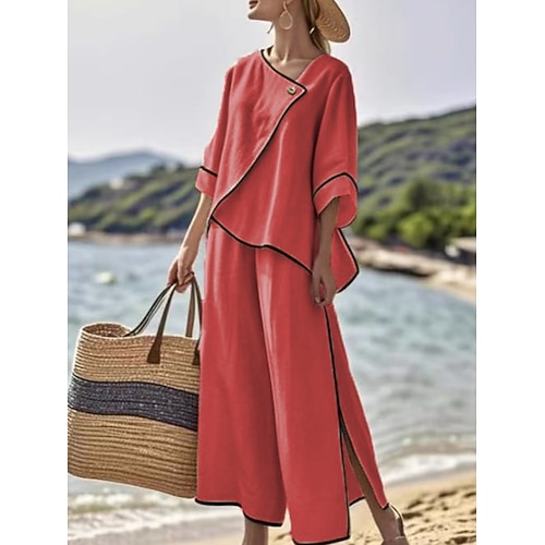Per donna Moda Streetwear Quotidiano Set di Pantaloni Manica 3/4 Girocollo Tinta unica Patchwork Casuale Quotidiano Blu Rosa Rosso Estate Vestibilità comoda