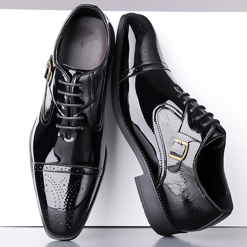 Men's Brown Formal Lace-Up Shoes – Elegant, Comfortable Fit with Glossy Patent Finish, Perfect for Weddings and Ceremonial Events
