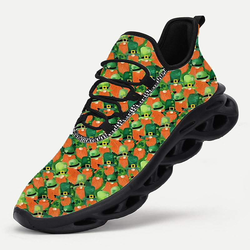 Men's St. Patrick's Day Sneakers – Green and Orange Design with Shamrocks, Perfect for Festive Celebrations
